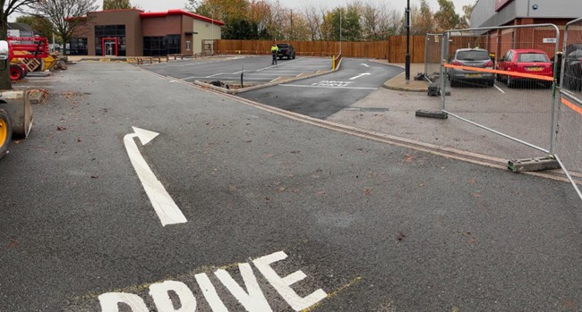 In addition to the internal conversion works, the project included significant external alterations, namely the reconfiguration of the existing car park to form a purpose-built drive-through lane tailored to the operational needs of the new restaurant. The works were delivered in accordance with the client’s programme and design specifications, with careful coordination to minimise disruption across the live retail environment.