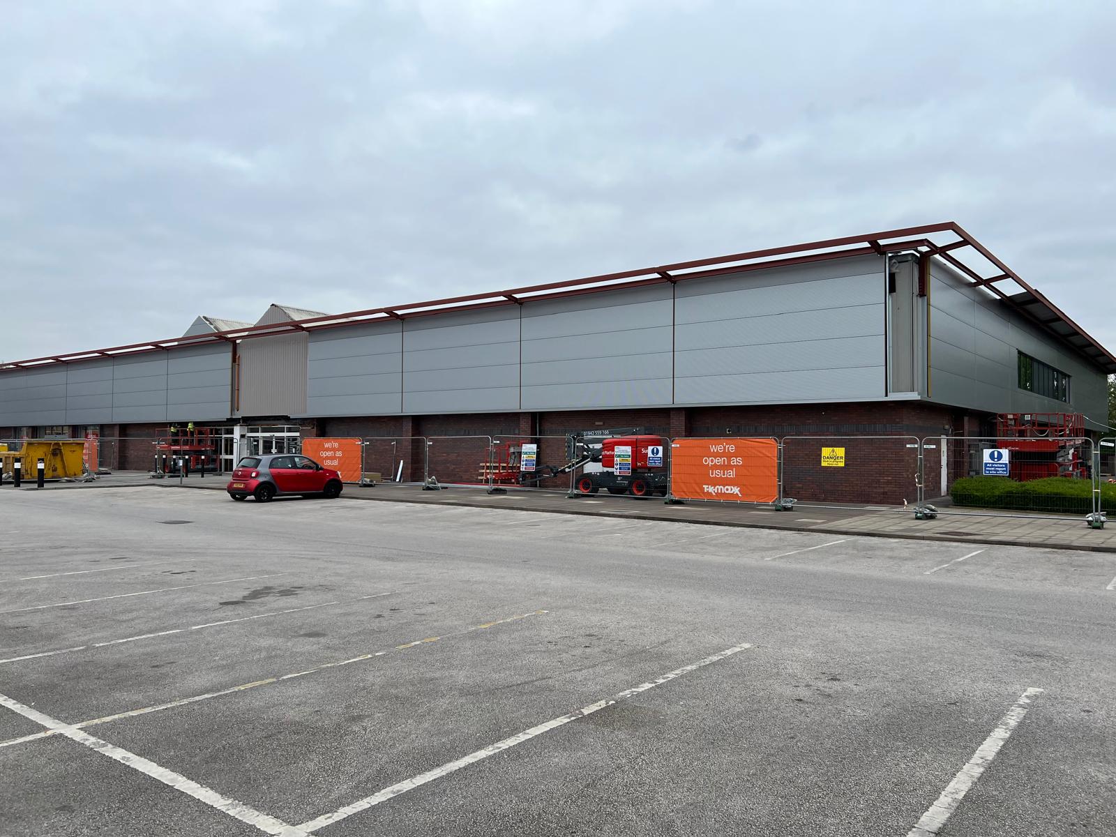 TKMAXX Home » Projects » TKMAXX Project Overview The project consists of recladding work to the existing units. Project Details SERVICE: Refurbishment Gallery